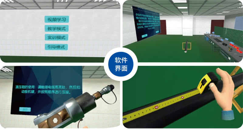 電纜頭制作VR實訓(xùn)系統(tǒng)采用VR虛擬現(xiàn)實技術(shù)還原電纜頭制作過程,體驗人員在虛擬場景中學(xué)習(xí)、實訓(xùn)制作電纜頭 的標(biāo)準(zhǔn)作業(yè)流程及標(biāo)準(zhǔn)工藝,節(jié)省實訓(xùn)場地空間,減少了材料浪費,避免操作過程存在的安全風(fēng)險,使培訓(xùn)變的 高效、安全、便捷、智能。
