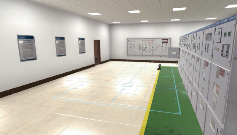 本項(xiàng)目在虛擬場(chǎng)景中搭建10kV典型配電室場(chǎng)景,系統(tǒng)采用10kV雙電源進(jìn)線方式,包括進(jìn)線柜、計(jì)量柜、PT 柜、出 線柜、聯(lián)絡(luò)柜、模擬屏等,模擬10kV開關(guān)柜日常運(yùn)行方式,進(jìn)行開關(guān)柜運(yùn)行轉(zhuǎn)檢修、檢修轉(zhuǎn)運(yùn)行作業(yè)過(guò)程中典型