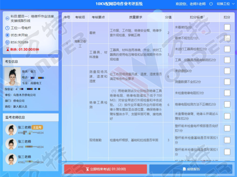 WT-FP190 配網(wǎng)帶電作業(yè)人工智能考評(píng)系統(tǒng)